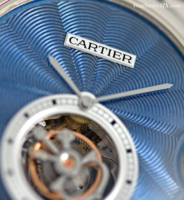 Das blaue Emaille-Zifferblatt ist ein Nicken für Cartiers frühe Geschichte, als f linqué-Emaille ausgiebig verwendet wurde, um Uhren und Kunstgegenstände im späten 19. und frühen 20. Jahrhundert zu dekorieren , besonders wenn diese in der Vorrevolution Russland waren.